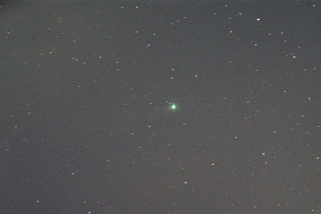 C/2025 R2(SWAN) 2025.10.08 2025.10.08 19h01m 30sec_18exp ISO800 D810A 690mmF6.5(AL-106Ⅱ) Lodestar+PHD2 Losmandy G11 周南市★高度が上がり、少し余裕をもって撮影できるようになりました。夕方は雨が降っていたのですが、日没前に晴れはじめ、日が暮れるころには西の低空から雲が消えました。透明感のある晴れとはいかなかったものの、とりあえず撮れたのでラッキーでした。