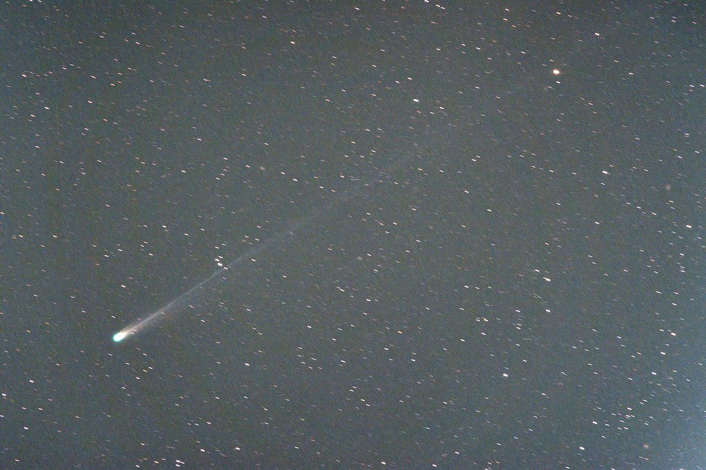 C/2025 A6(Lemmon) 2025.10.14 2025.10.14 04h32m 120sec_12exp ISO400 D810A 200mmF4→F5.6 SKYMEMO-P- 周南市★頭上に下弦の月。空は透明度が今ひとつ。彗星を双眼鏡で見ても、昨日より暗くなった? みたいな印象でしたが、それなりに写ってくれました。