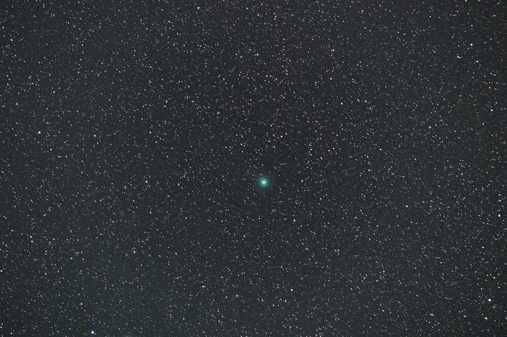 C/2025 R2(SWAN) 2025.10.24 2025.10.24 20h02m 120sec_4exp ISO1600 D810A 200mmF4→F5.6 SKYMEMO-P- 阿武町西台★レモンに注目が集まりすぎてちょっと可哀そうなスワンですが、いかにも彗星というような緑色の輝きはなかなかのものです。