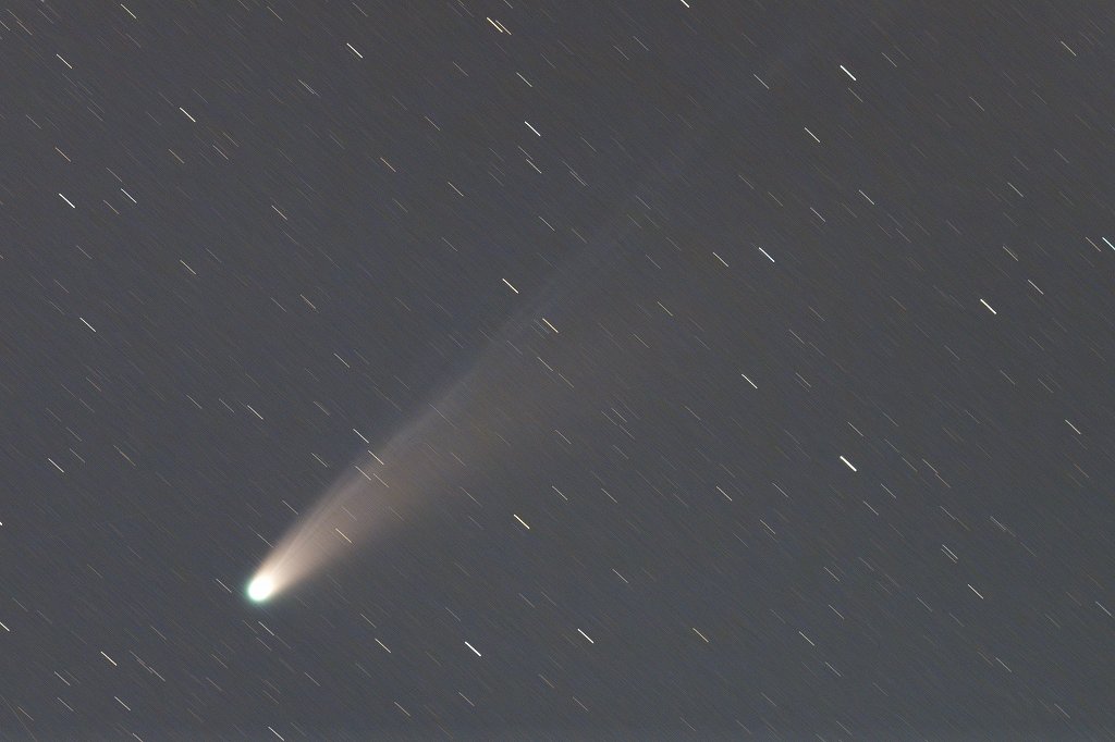 C/2025 A6(Lemmon) 2025.10.28 2025.10.28 18h23m 60sec_22exp ISO400 D810A 690mmF6.5(AL-106Ⅱ) Lodestar+PHD2 Losmandy G11 周南市★空の透明度は良かったのですが、一時薄雲が通過しました。画面右が北です。