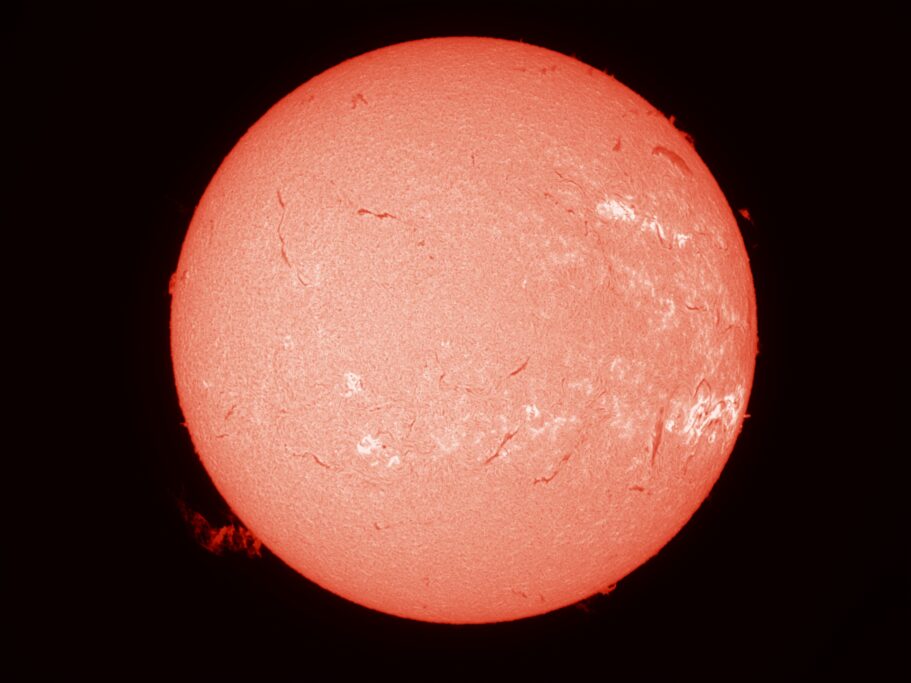2025.12.11 太陽プロミネンス 2025.12.11 08h44m ACUTER フェニックス(400㎜) ZWO ASI 585MC SkyWatcher SolarQuest 一昨日(12/9)に巨大化の予兆がありましたが、昨日(12/10)が巨大化のピーク、そして本日(12/11)は鎮火が始まっていました。昨日は、曇りで撮影できなかったことが残念です。