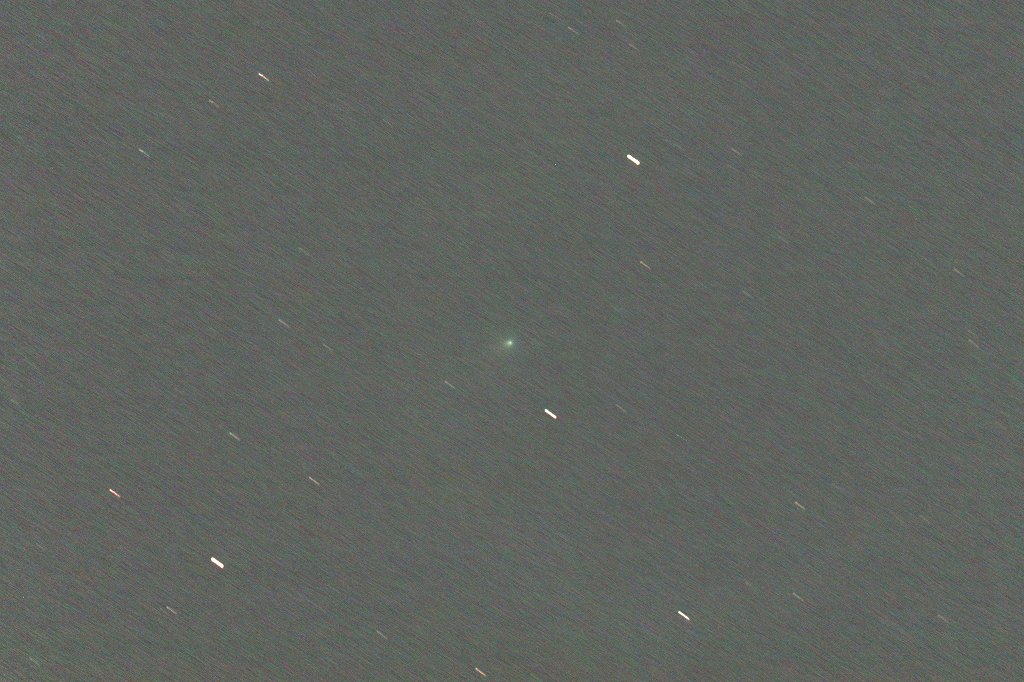 C/2024 E1(Wierzchos) 2026.02.18 2026.02.18 18h52m 60sec_9exp ISO1600 D810A 1800mmF10(Mirage-7) LPS-P2 Lodestar+PHD2 Losmandy G11 周南市★昨日より約1.7度高度が上がったので、少しは落ち着いて撮れるぞと思っていたら、上空に雲が広がってきました。南西の低空はしばらく無事に撮影できていたのですが、それも時間の問題。明け方・夕方の彗星はいつも何かとの戦いですね。